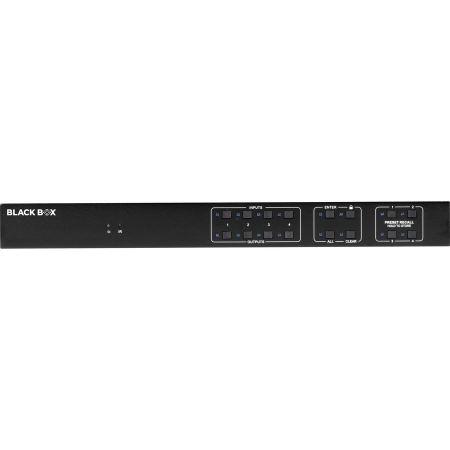 This capable switch supports 4K x 2K at 60 HZ 4:4:4 and 1080p 3D signals, and is compatible with HDMI 2.0, HDCP 2.2, and is backward compatible with the earlier versions. You can control the unit via the front panel, IR, RS-232, TCP/IP, and web-based GUI.