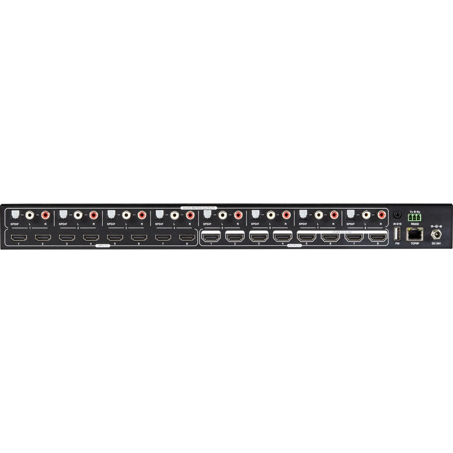 The Video Matrix Switch is a professional 4K HDMI 2.0 Matrix Switch with either 4 or 8 HDMI inputs, 4 or 8 HDMI outputs, and 4 or 8 SPDIF audio outputs. It is designed for switching HDMI 2.0 and HDCP 2.2 compliant signals. It also includes powerful EDID management to ensure reliable AV distribution and routing.
