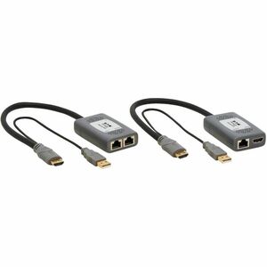 The included transmitter and receiver units work right out of the box with no software required. Both feature a one-foot USB-A pigtail connector as the primary power source. Plug the USB connector on the transmitter into a USB-A power adapter (such as U280-W01-QC3-1, sold separately), and plug the receiver into the display's USB-A port. User-supplied 24 AWG Cat6 cabling connects the transmitter and receiver. Note: The transmitter and receiver can also be powered through their Micro-USB ports.