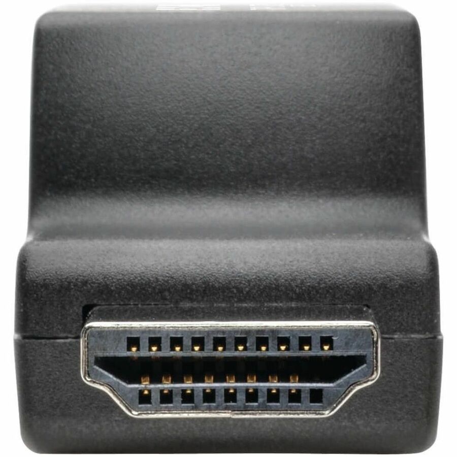The compact, low-profile design helps hide the unit from view. The B126-1P0-MINI's built-in HDMI male connector plugs directly into the monitor. The unit can extend a 1080i (@ 60 Hz) signal up to 100 feet (30.5 m) or a 1080p (@ 60 Hz) signal up to 50 feet (15.2 m) with a single Cat5e/6 cable. For best results, use 24 AWG solid-wire Cat5e/6 cable (such as Tripp Lite's N202-Series) between this unit and the transmitter.