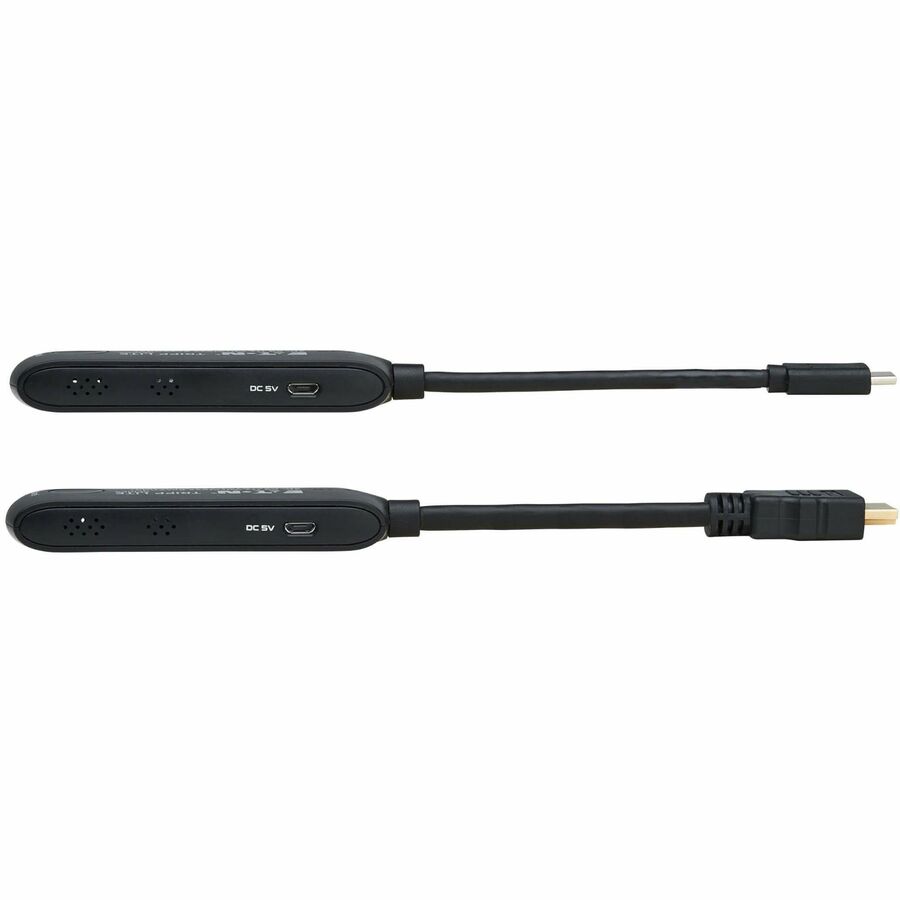 The wireless transmitter and receiver set works right out of the box with no software required. Connect the receiver to the display's HDMI port and the transmitter to the source's USB-C port. Included USB cables connect the two units to a 5V 1A AC wall charger (not included) if extra power is required.