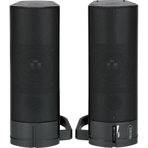 AcoustiX™ Convertible Speakers project powerful, clear, USB-powered stereo sound. Limited desk space? The speaker enclosures magnetically attach to transform from towers into a sound bar. Great sound from a compact system that only needs USB Power.