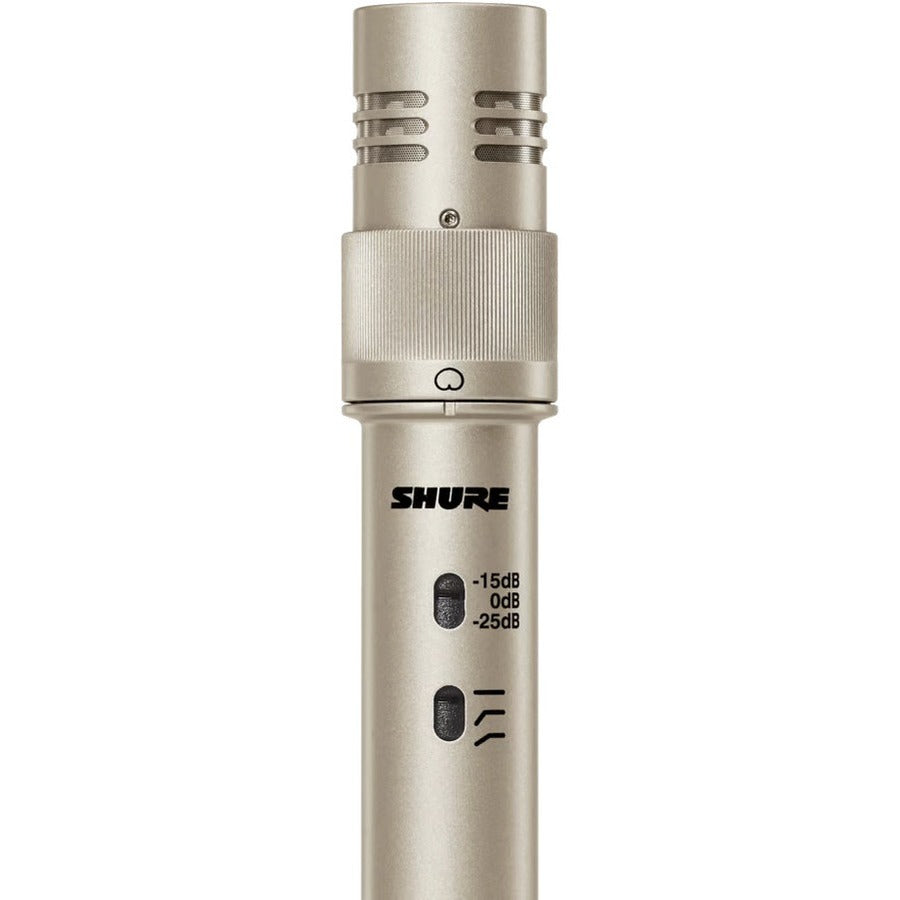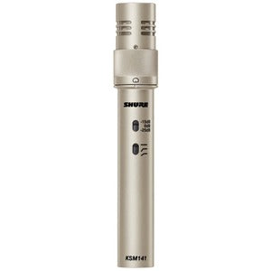 The Shure KSM141 is a small diaphragm end-addressed condenser microphone with a rotating collar allowing easy switching between a highly consistent cardioid or true omnidirectional polar pattern for smooth and extremely focused sound reproduction. Designed for studio use, yet rugged enough for live applications, the KSM141 can withstand extremely high sound pressure levels (SPL). Its low self-noise and extended frequency response make it ideal for recording musical instruments. Versatile, durable, and precise, the KSM141 is an outstanding microphone for both live and studio applications.