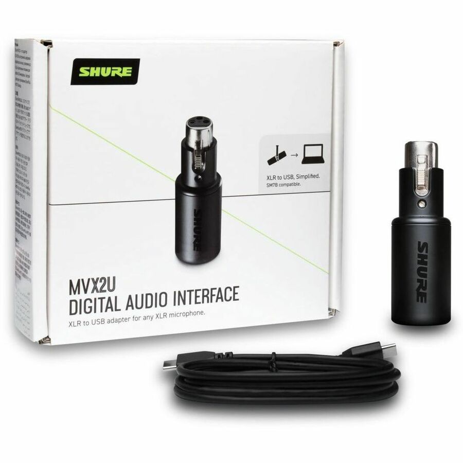 The MVX2U Digital Audio Interface is a powerful, single-channel XLR-to-USB adapter that allows you to connect any XLR microphone to a computer for effortless recording and streaming. With configurable DSP features and full access to ShurePlus MOTIV Desktop App, the compact interface is future-proofed via online firmware updates. Providing up to 60dB of clean gain, the XLR-to-USB adapter has enough power to bring your favorite dynamic microphone, such as the legendary SM7B, to life. It also offers up to 48v of phantom power for connecting a condenser microphone to your computer. Portable, sleek and rugged, the MVX2U can be plugged straight onto an XLR microphone or used in-line with an XLR cable, depending on your setup.