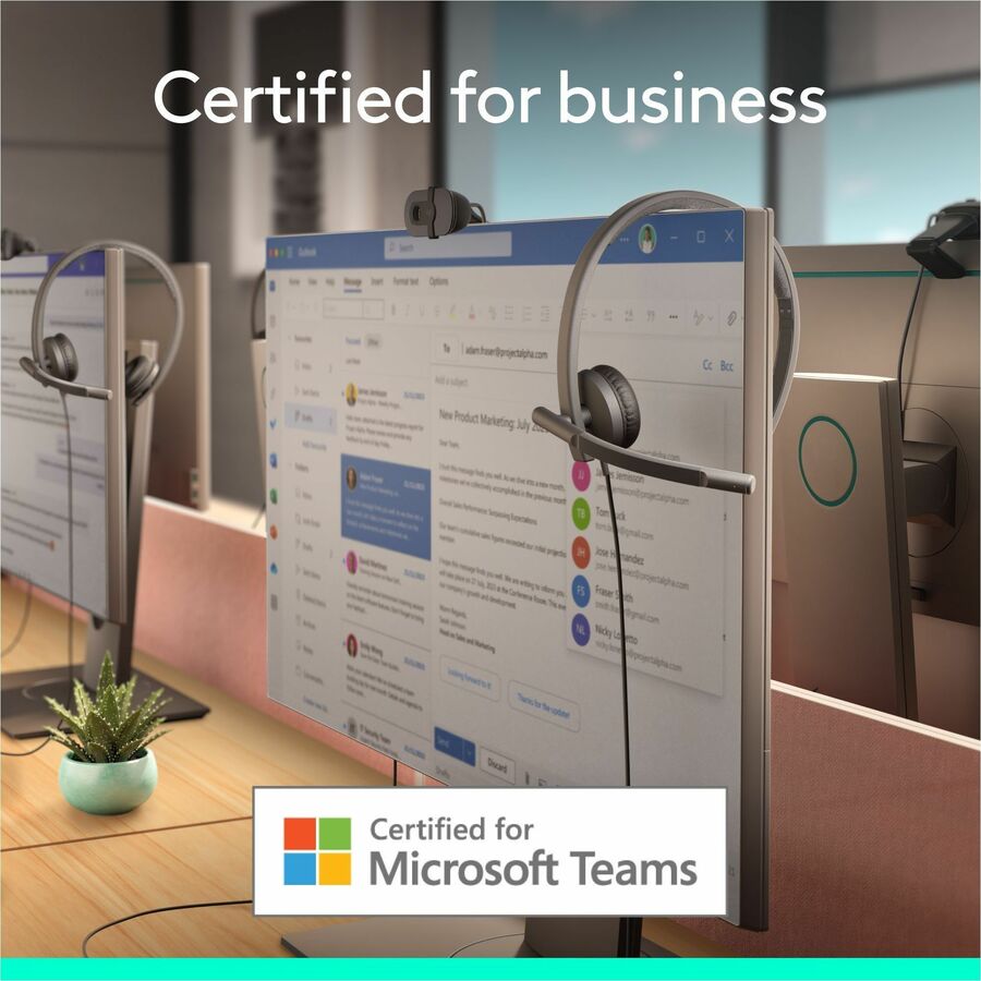 - Certified for Microsoft Teams: This USB headset features 2 noise-canceling microphones and a 30mm audio driver to ensure you can hear and be heard clearly in noisy open workspaces