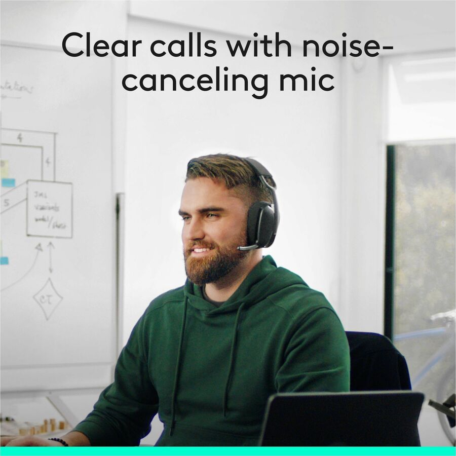 Offer employees an over-the-ear headset with modern design and comfort. Certified for Google Meet, Google Voice, and Zoom, Zone Vibe Wireless is made for video conferencing. Deploy our most affordable wireless headset without sacrificing the essential features employees want and need. Immersive audio ensures employees can hear clearly. Noise-canceling mic with beamforming technology reduces background sounds so employees can be heard. Wireless reliability with a USB receiver protects against dropped calls. Multipoint Bluetooth enables easy switching between devices. Long battery life provides up to 18 hours of talk time. Built for business, Zone Vibe Wireless is perfect for employees who work at home or in the office - or both. Use Logitech Sync to ensure employees' Logitech video collaboration devices are healthy and up to date. Meet your environmental and sustainability goals with the headset made with 25% post-consumer recycled plastic.