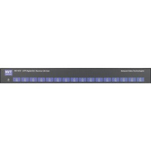 Employing NVT's latest generation DigitalEQTM technology, the NV-1672 is an 16-channel active (amplified) hub that allows the transmission of full-motion monochrome or color video for distances up to 1 mile (1,6km) using Category 2 or better unshielded twisted-pair (UTP) wire. The receiver hub continuously and automatically conditions the video signal, compensating for cable attenuation, wiring polarity, ground loops, and voltage transients, independent of video signal content.