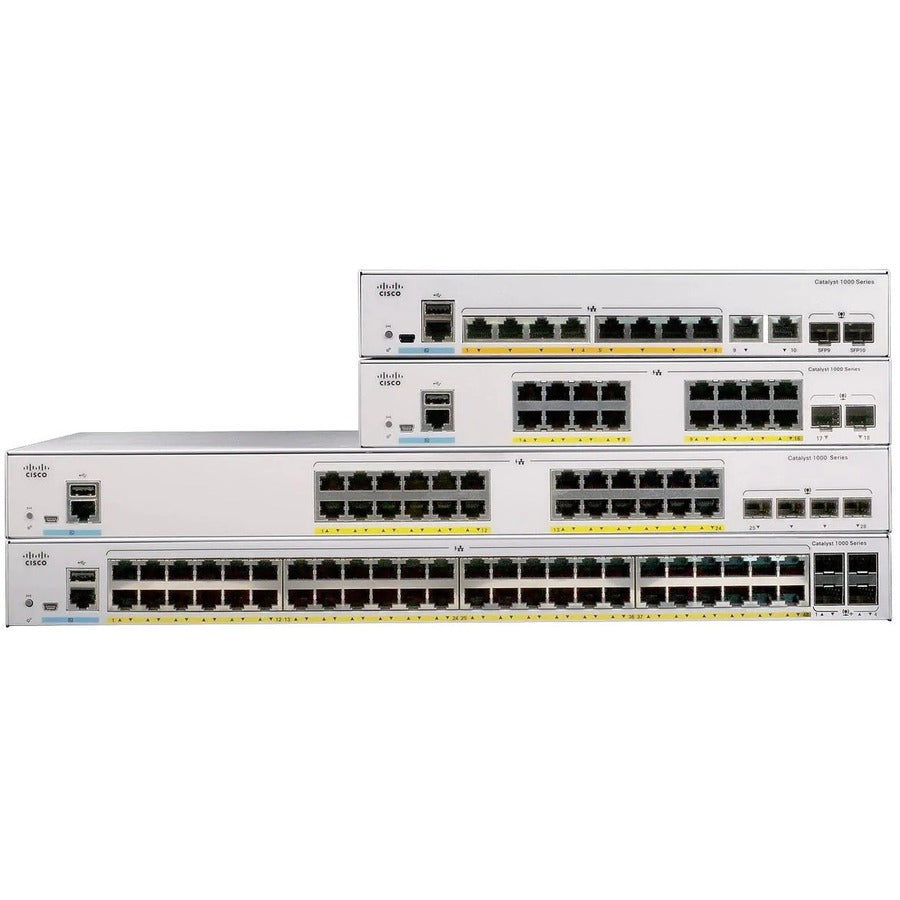 Cisco® Catalyst® 1000 Series Switches are fixed managed Gigabit Ethernet enterprise-class Layer 2 switches designed for small businesses and branch offices. These are simple, flexible and secure switches ideal for out-of-the-wiring-closet and critical Internet of Things (IoT) deployments. Cisco® Catalyst® 1000 operate on Cisco IOS® Software and support simple device management and network management via a Command-Line Interface (CLI) as well as an on-box web UI. These switches deliver enhanced network security, network reliability, and operational efficiency for Small and Medium Sized (SMB) organizations.