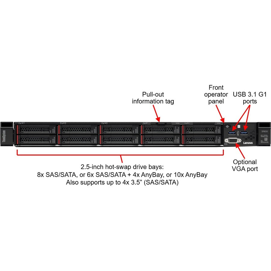 Lenovo ThinkSystem SR635 7Y99A016NA 1U Rack Server - 1 EPYC 7402P 2.80 GHz - 32 GB RAM
