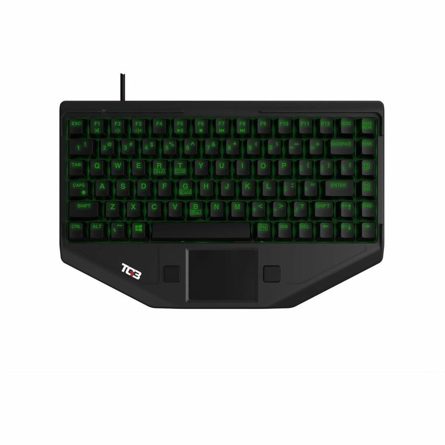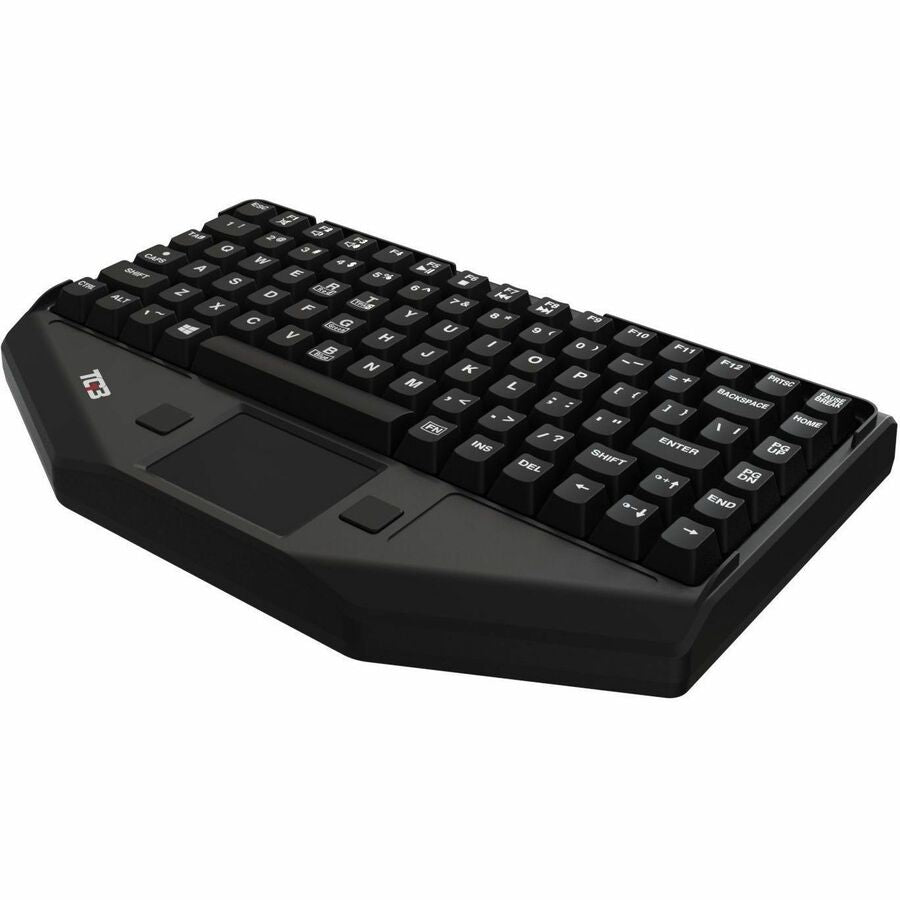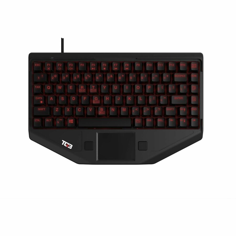 Rugged keyboard with adjustable red backlighting and a touchpad that comes with detachable straight and coiled cords