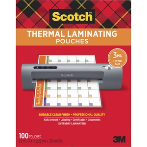 Laminating pouches are designed for use with the 3M Scotch Thermal Laminator or any standard, thermal-pouch laminator. Pouches provide instant, two-sided protection for frequently handled or referred to items. Photo-safe pouches are clear to let important information show through with a professional finish. Preserve and protect documents, awards, signs, calendars, certificates, children's artwork, schedules and more.