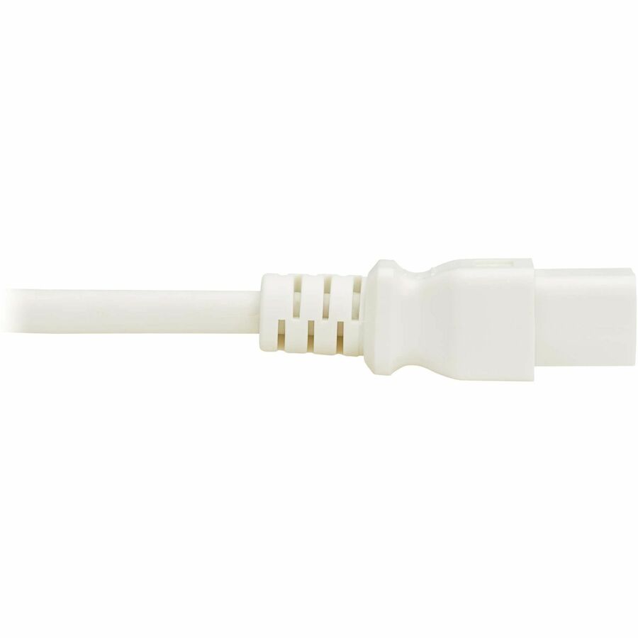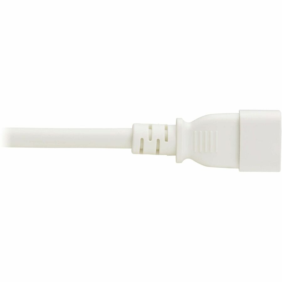 The UL-listed cable has a white PVC jacket with fully molded white ends, which is easy to identify quickly in a crowded PDU or UPS system and helps prevent the cable from becoming accidentally disconnected.