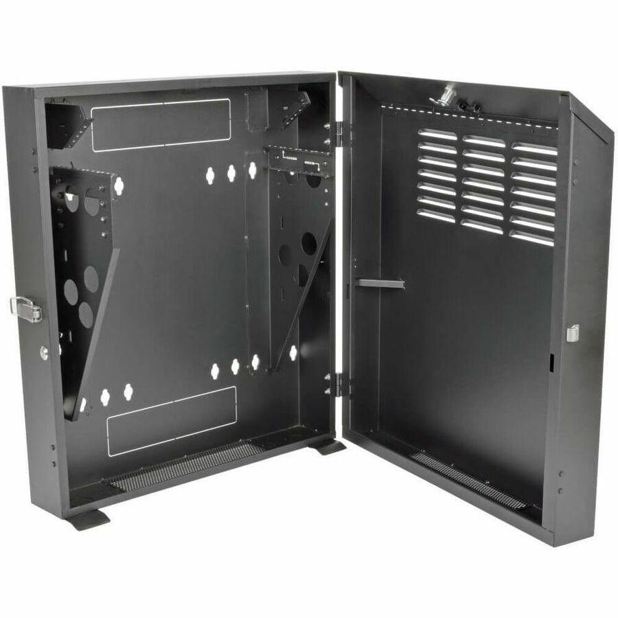 The top panel and front door lock securely to help prevent damage, tampering or theft. The cabinet is vented, which allows air to flow freely and keep equipment cool. The reversible front door can open left or right. Convenient top and bottom ports allow easy cable routing.