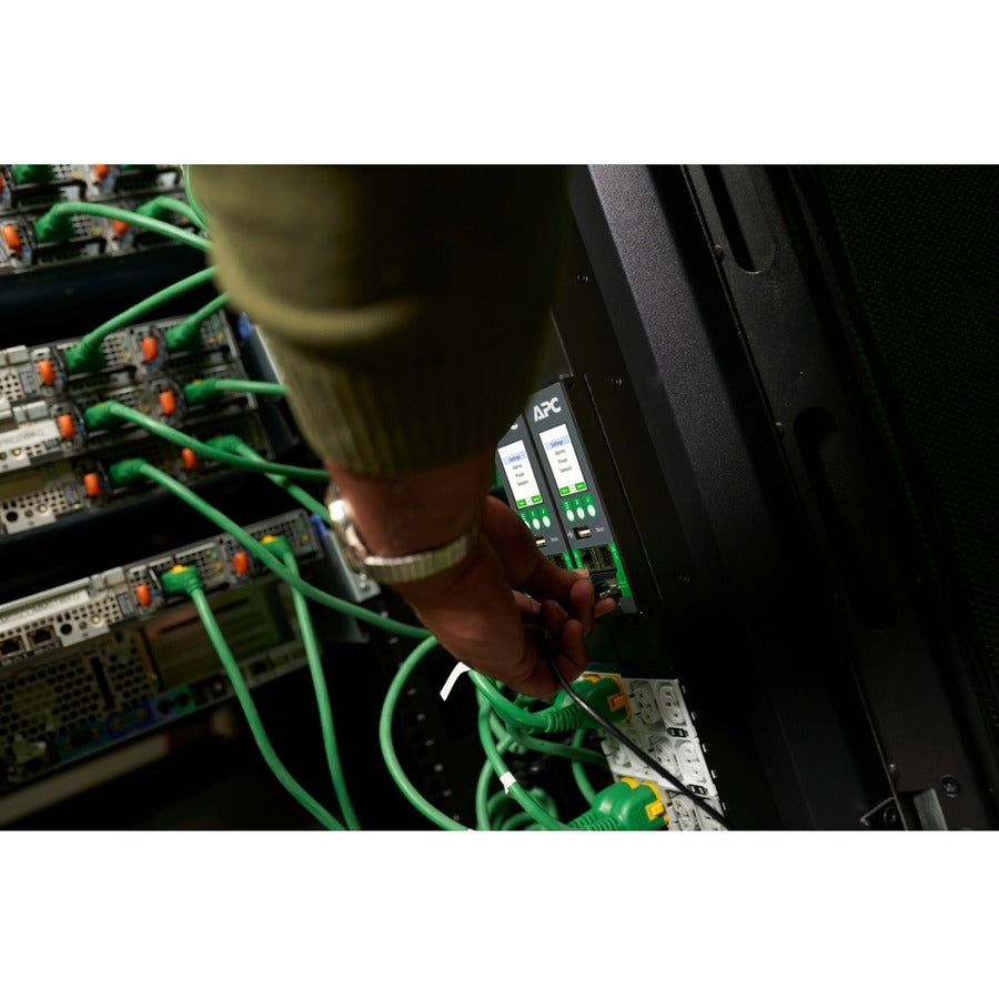 APC NetShelter Rack PDU Advanced provide reliable power distribution to IT Equipment within server and/or networking racks. Switched outlets to turn outlets on or off remotely. Outlet and PDU level power metering for power visibility and notification of potential overload. 4-in-1 combination outlets which can be used as either C13, C19, C15, or C21 outlets provide unparalleled deployment flexibility. Maximum outlet density with 48 outlets in a 2.2" wide form factor. Outlets on the PDUs are color coded and/or labeled by breaker and input phase on 3 phase models to simplify deployment. Provides an alternating phase design whereby each of the 3 phases are organized into small outlet groups which alternate from top to bottom of the PDU to facilitate better power cord management and promote better load balancing. Power Sharing allows PDUs cascaded together via 2 ethernet ports enable an Network Management Card to continue functioning in the event of an AC power loss. No interruption in Network communication, sensors operation, and alarm traps. Live Swap Network Management Card (NMC) which can be replaced without powering down the PDU or connected devices to minimize downtime in the unlikely event of an NMC power event. Rated and approved to operate up to 60C (140F) at full load ensures reliability and availability even in today's high density deployments. Gigabit ethernet to enhance and standardize network connectivity across all assets in the data center. A second ethernet port (10/100) is available to allow cascading to other PDUs, connect to a 2nd private network, or provide network redundancy. 1% metering accuracy for the peace of mind to use NetShelter Rack PDU Advanced to bill based on power usage. In addition, the higher level of accuracy ensures the most precise measures for capacity planning and threshold alarm monitoring. Two environmental sensor ports allow for optional sensors (sold separately) to be connected. For data center deployments across multiple regions, these PDUs are both UL and CE rated providing one PDU that can be used globally to simplify and standardize deployment.