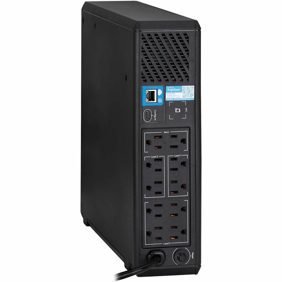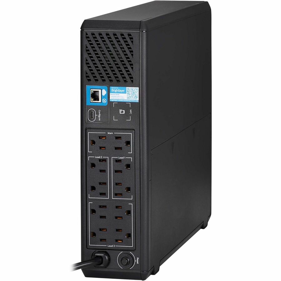 Ten 5-15R outlets provide battery backup and surge protection for your security camera, router, network switch, server and other sensitive electronic devices. Remote monitoring allows individual control of three switchable load banks that can be powered on/off or cycled remotely, saving you an expensive and time-consuming on-site visit.