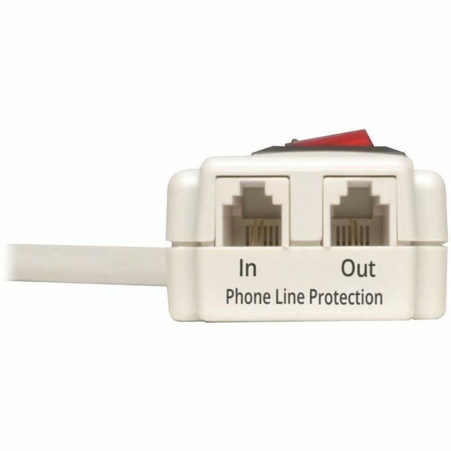 Tripp Lite's TLP604TEL Surge Suppressor offers economical AC and phone line surge suppression for full protection of workstations, desktop PCs, telecom systems and other sensitive electronics. Built-in AC surge suppression shields connected equipment from damage and performance problems due to transient surges. Set of RJ11 telephone line suppression jacks protect dialup and DSL modem lines, fax machines, cordless phones and more. TLP604TEL offers 6 total outlets, 4 foot cord and diagnostic LED to warn of suppressor damage. AC suppression rated at 870 joules shields equipment from surges and line noise. Attractive white suppressor housing with keyhole mounting tabs and 1 designated transformer plug outlet offers convenient protection of desktop computer equipment and accessories. ,20,000 Ultimate Lifetime Insurance (USA & Canada only).