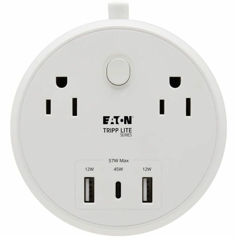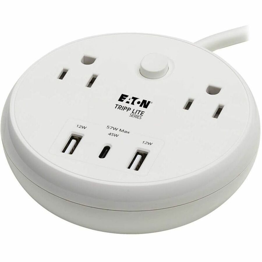 Eaton Tripp Lite Series Safe-IT 57W 2-Outlet Surge Protector - 5-15R Outlets, 3 USB Ports, 8 ft. (2.4 m) Cord, 300 Joules, Antimicrobial Protection, White