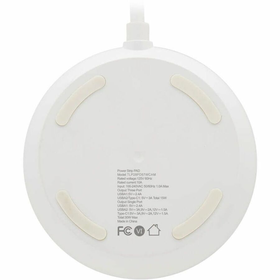 Just four inches in diameter, the TLP28PD57WCAM fits easily into your home or office workspace, providing power and USB charging at your fingertips. Its compact design also makes the surge protector ideal for travel, fitting easily into your backpack, laptop bag or suitcase for use in hotels, conference rooms and cruise ships. The eight-foot (2.4-meter) braided power cord connects to an AC wall outlet.
