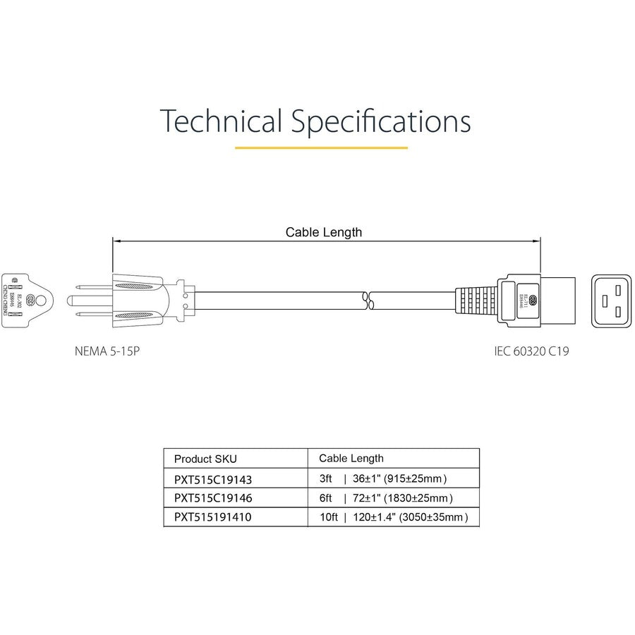 Expertly designed and constructed of high-quality materials, the StarTech.com PXT515C19143 power cord is backed by a lifetime warranty.