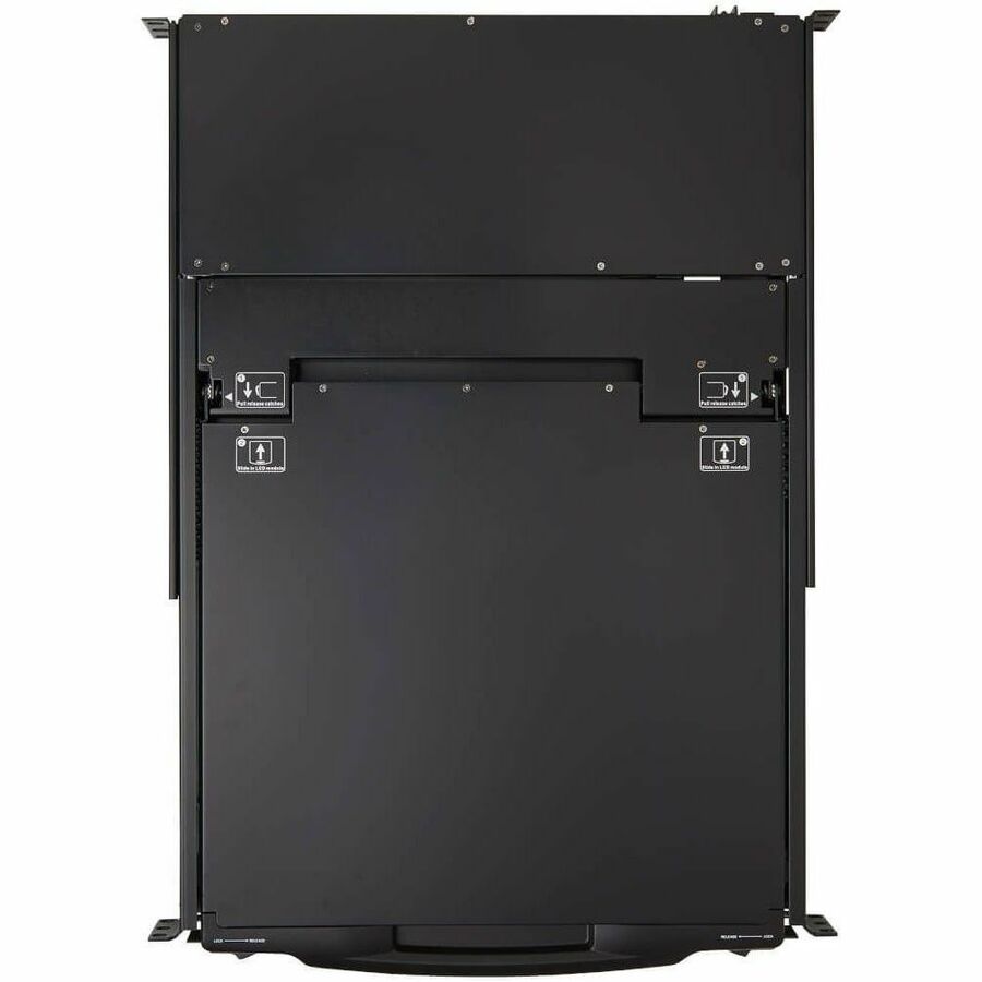 - Dual-rail design allows LCD to stay open while keyboard/touchpad slides into the rack