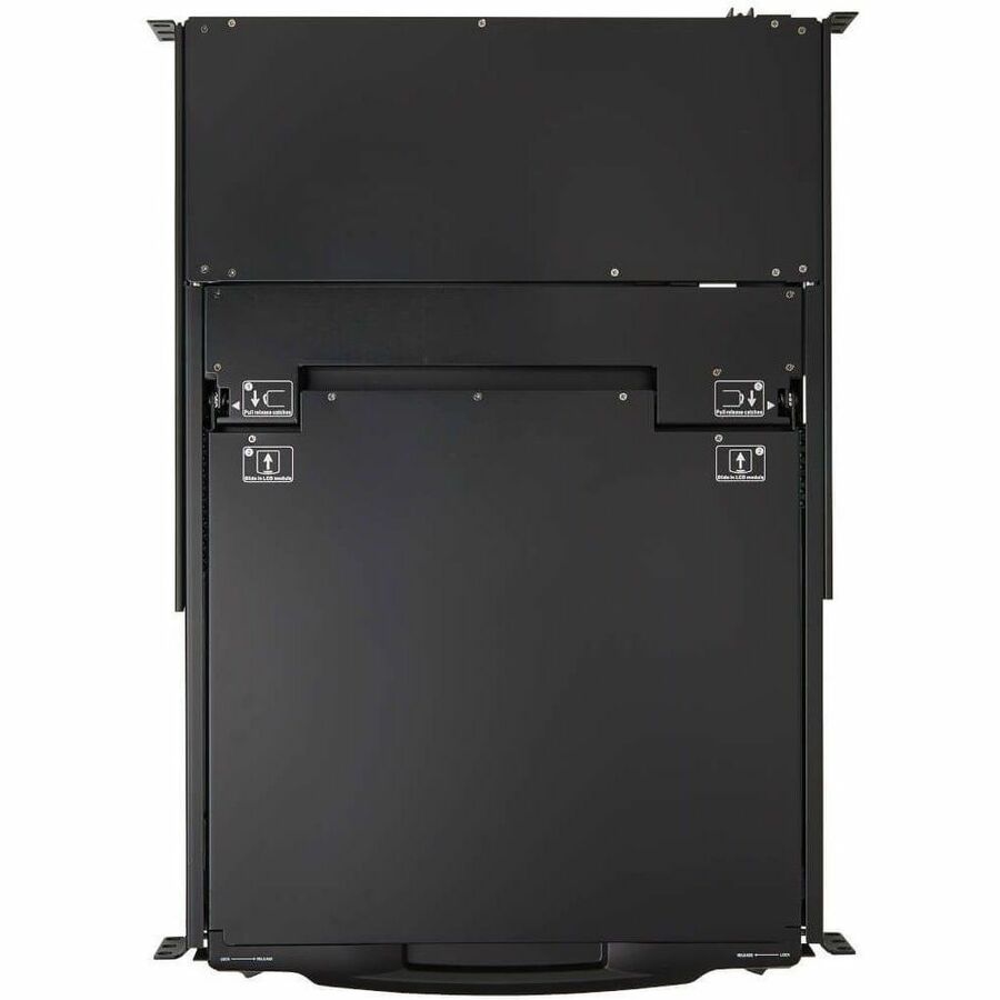 - Dual-rail design allows LCD to stay open while keyboard/touchpad slides into the rack