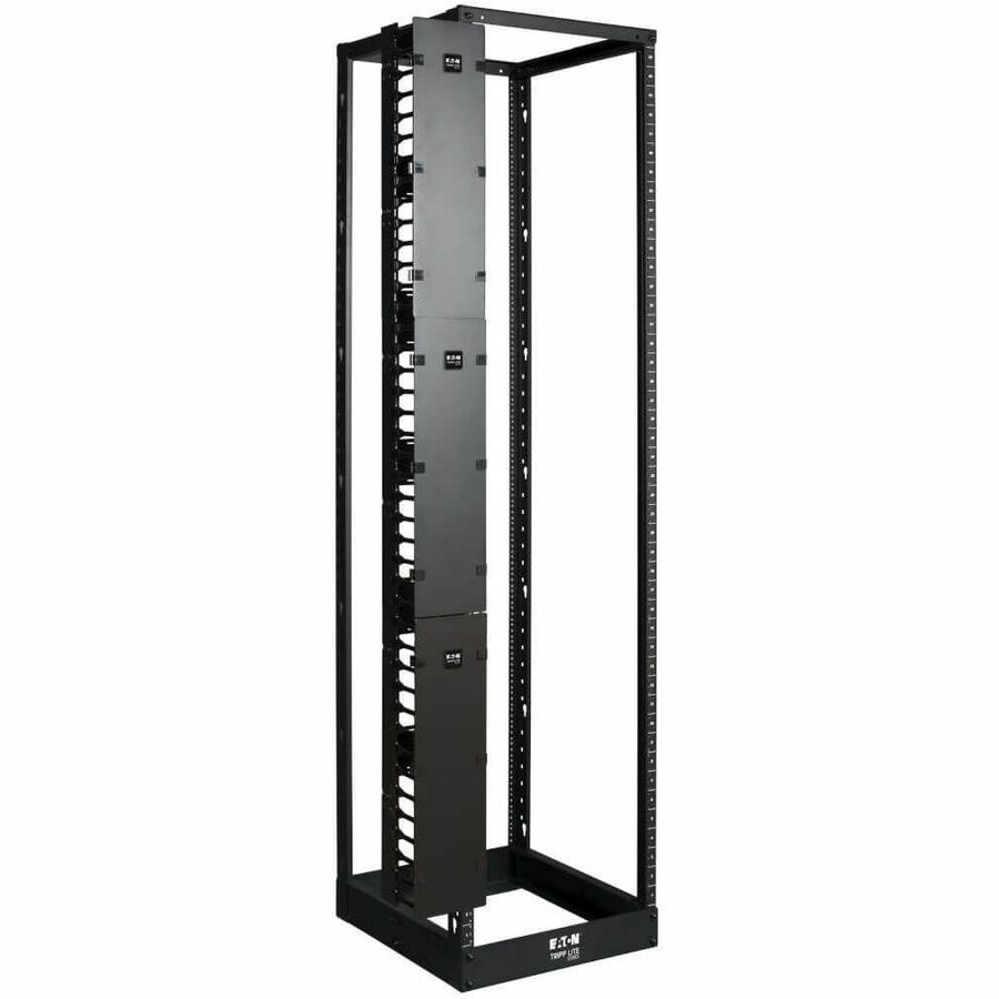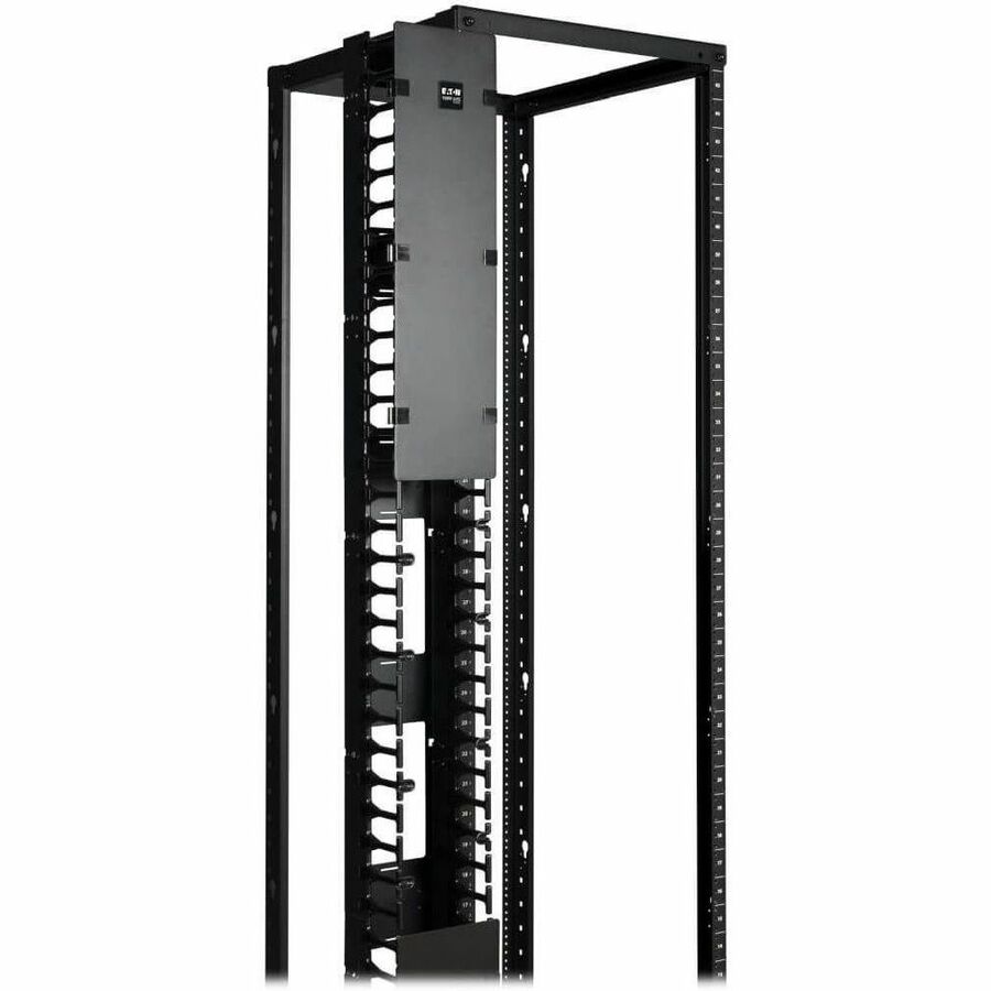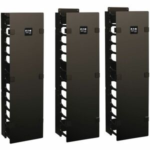 Tripp Lite's SmartRack SRCABLEVRT6 helps eliminate cable stress by organizing the cables within the SmartRack Open Rack cabinet. The vertical cable manager (finger duct with cover) is 6-ft high and split into three 2-ft sections to allow for multiple installation options. SRCABLEVRT6 offers toolless button mounting.