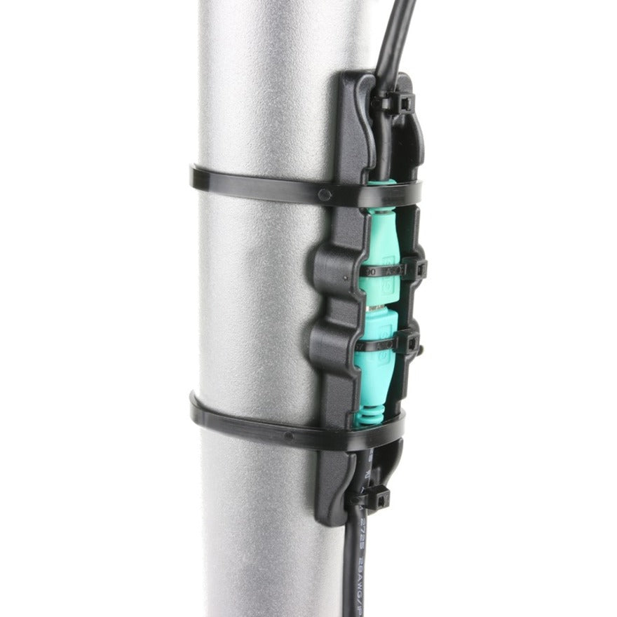 This plastic cable clamp for GDS® mUSB and USB Type-C cables secures the connection between the GDS® vehicle dock's pigtail connector and the GDS® charger. Four small zip ties can be attached around the connection to ensure cables cannot be unplugged. Additionally, two long zip ties are included with the clamp for mounting to the back of a GDS® Dock™ or the RAM® Tele-Pole™ for vehicle bases. These long zip ties allow for attachment on rails up to 1.5" in diameter.