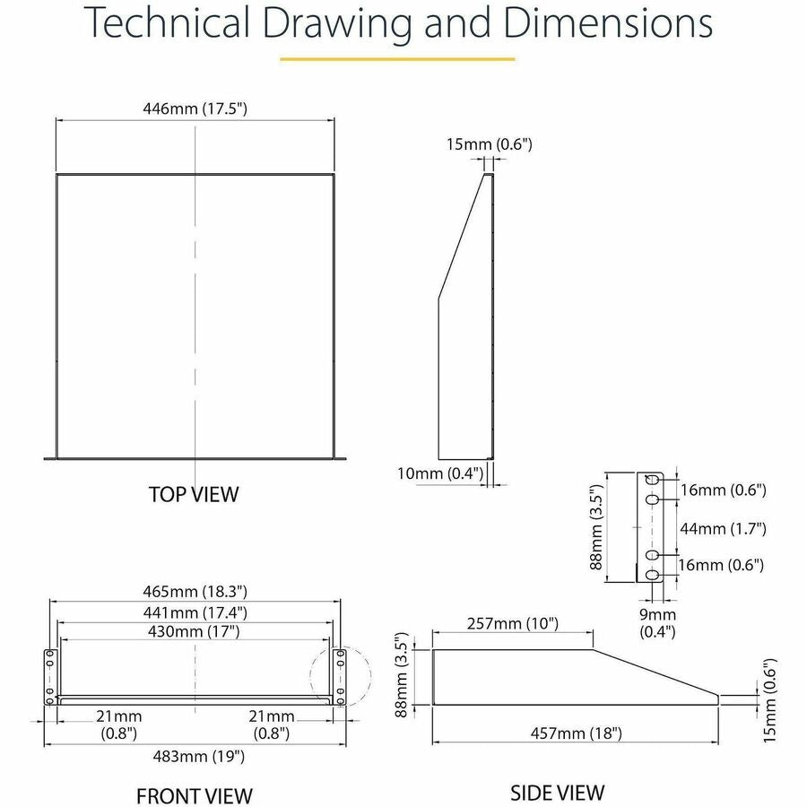 StarTech.com 2U Server Rack Cabinet Shelf - Fixed 18" Deep Cantilever Rackmount Tray for 19" Data/AV/Network Enclosure - Weight Cap. 125lbs/56kg