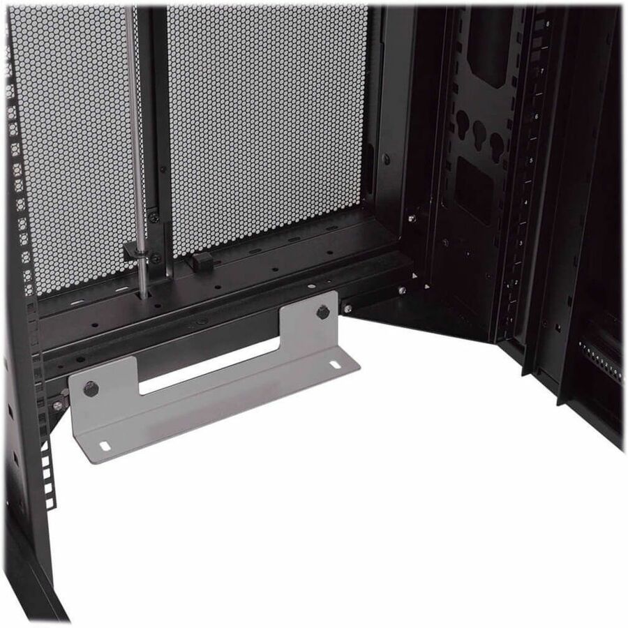 Built-in baying brackets and removable side panels allow the combination of two or more rack cabinets in a row for cost-effective, orderly and efficient expansion. Center-to-center width can be set at 24 inches (600 millimeters) to match standard data-center floor tiles.
