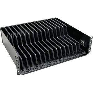 The SR16SHELF 3U Rack-Mount Configurable Storage Shelf securely stores up to 16 personal electronic devices in your wall-mount or floor rack enclosure. Ideal for storing tablets, laptops, Chromebooks and other similar devices, the SR16SHELF comes preset with 4/5-inch spacing between its plastic dividers. However, the 15 dividers can easily be removed and adjusted to fit your devices.