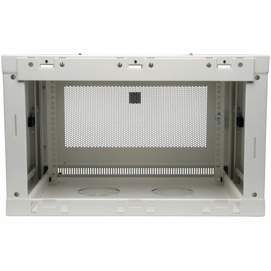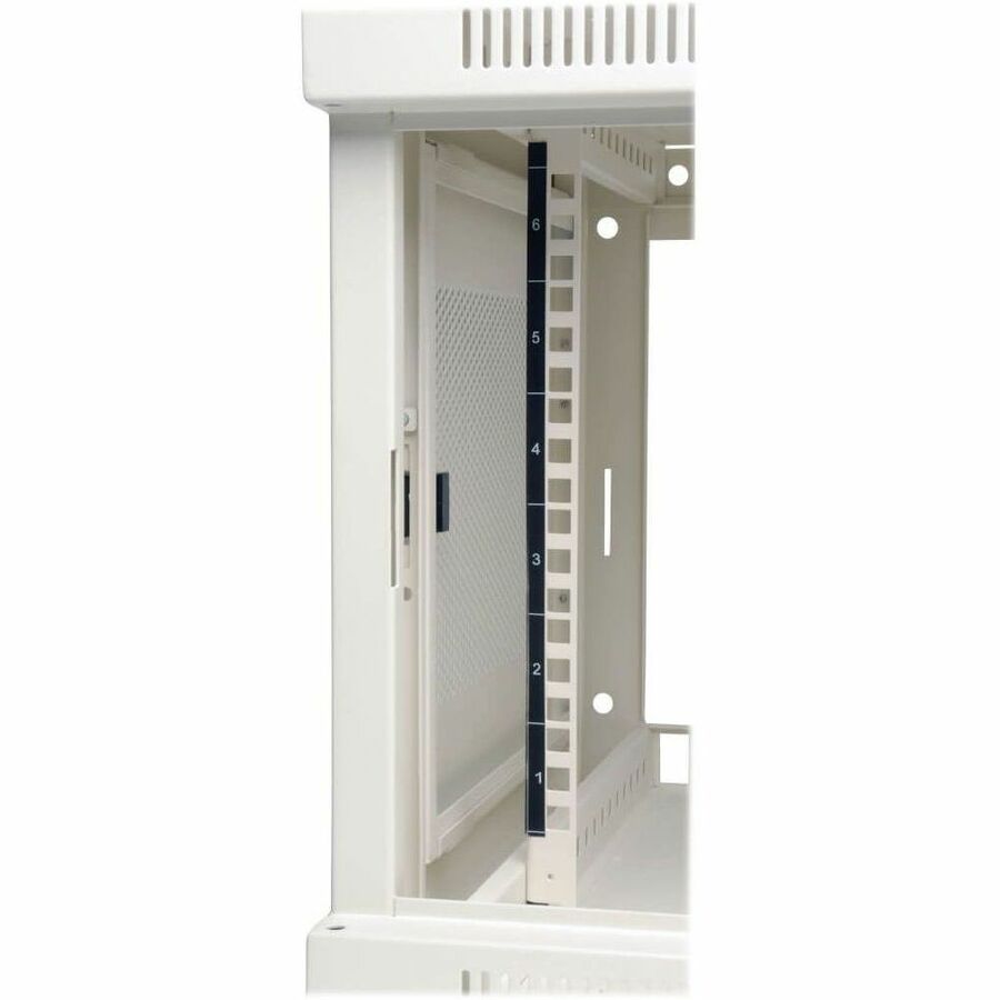 The SRW6UW is a white 6U Wall-Mount Rack Enclosure Cabinet designed to integrate wall-mounting, easy equipment access, and cable management in IT network applications with limited floor space. Ventilated front door and side panels allow generous airflow to keep equipment operating safely. Adjustable front mounting rails have both square mounting holes (default position) and tapped holes to accommodate up to 6U of standard 19" rackmount equipment. Supports up to 200 lbs of equipment. A sturdy wall-mount bracket allows the cabinet to quickly be hung on the wall. The SRW6UW comes with a 5-year product warranty.