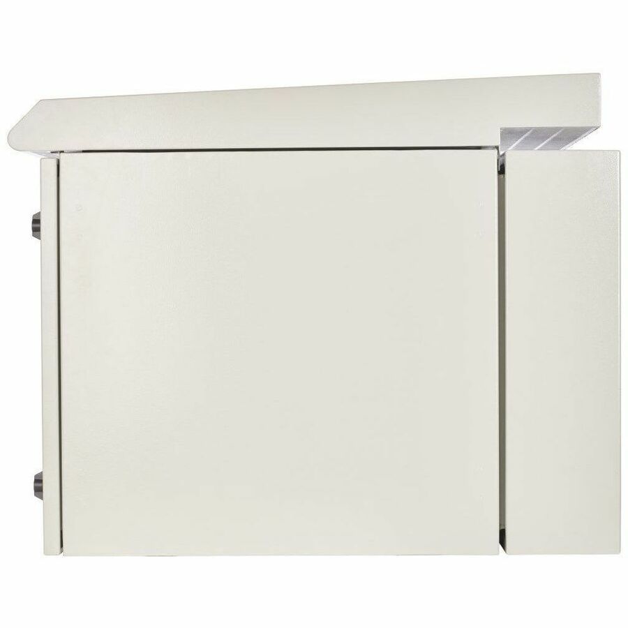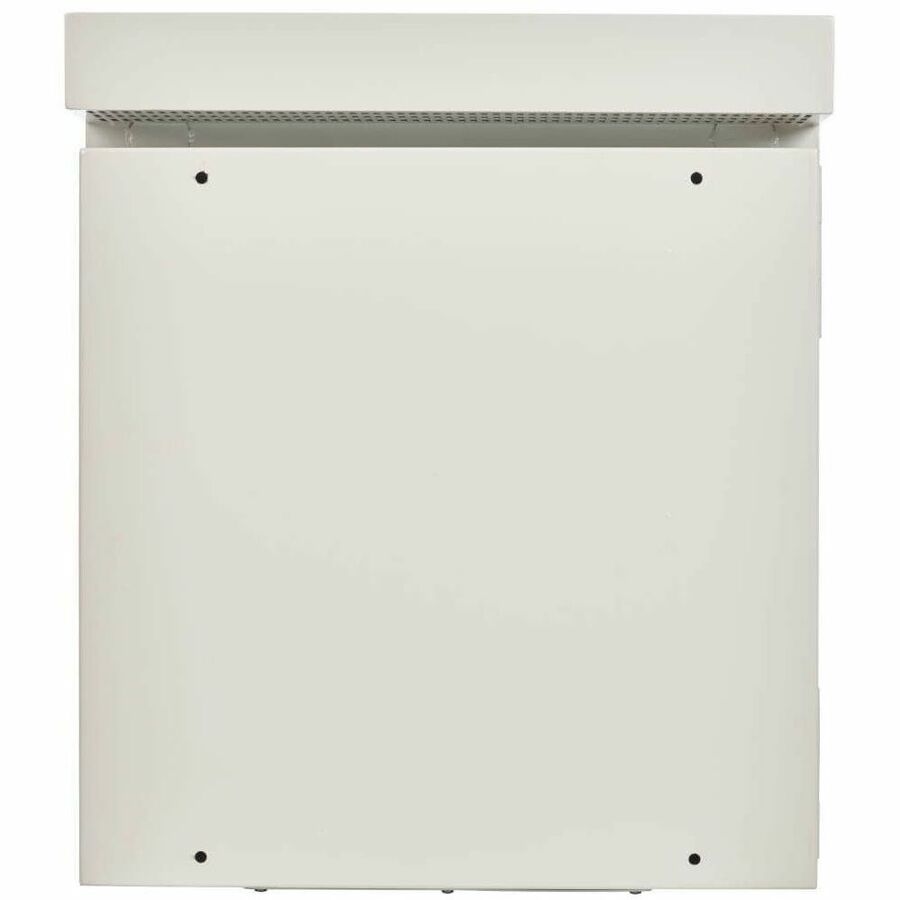 The fully welded steel housing locks securely with the included keys to protect its contents against theft, tampering and unauthorized access. The enclosure swings away from the wall on a sturdy hinge, allowing easy back-door access to equipment and cabling during installation and maintenance. Data and power cables may be routed through a bottom conduit cutout.