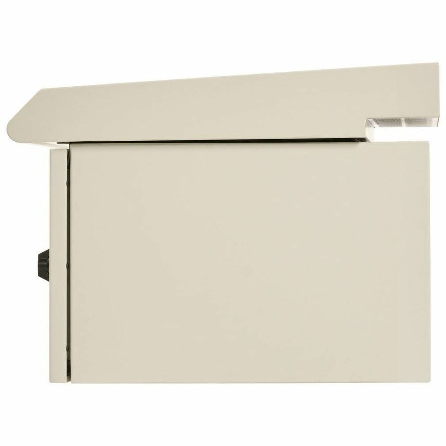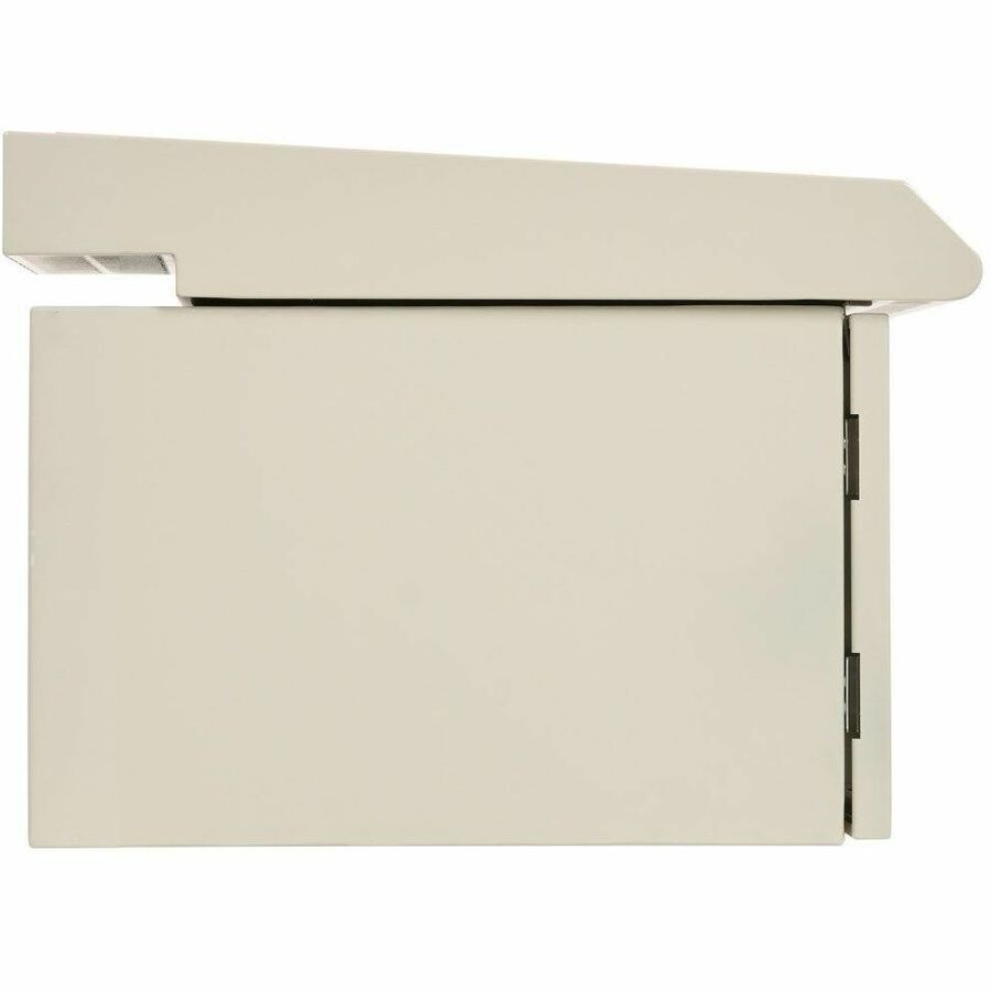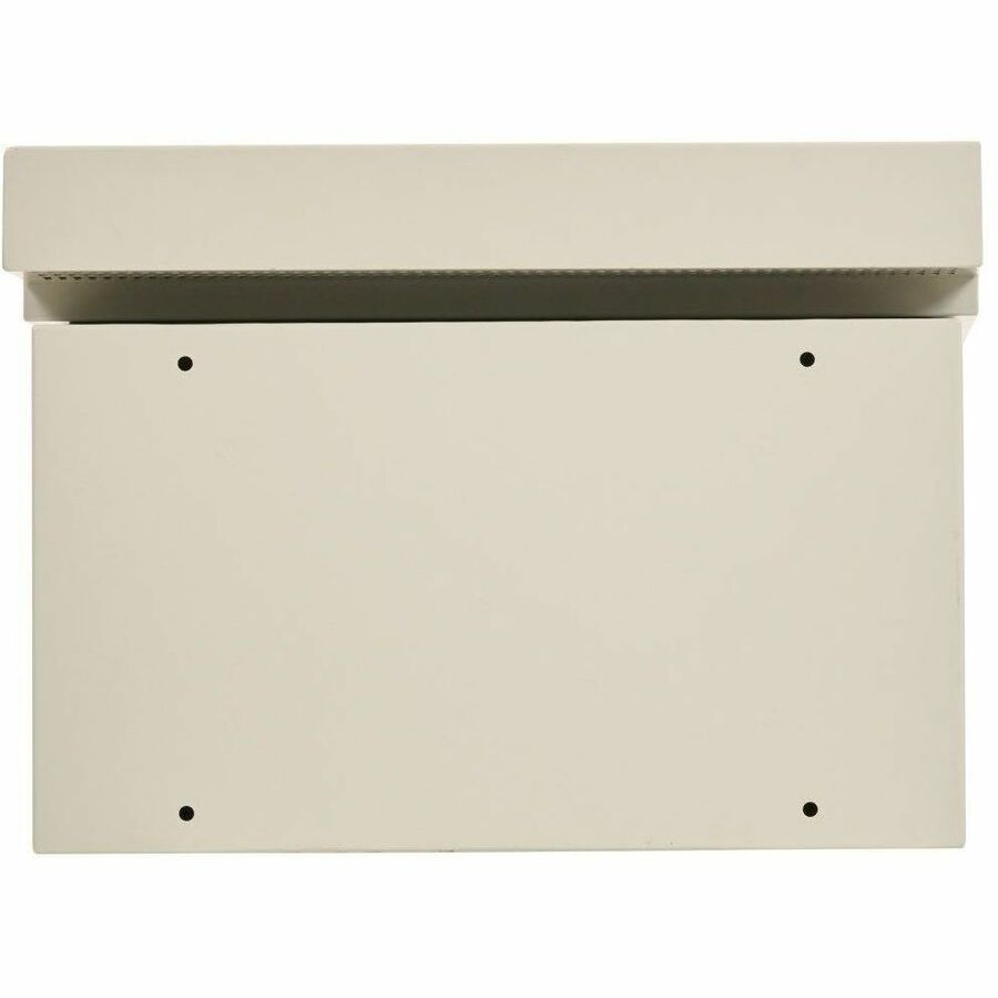 The fully welded steel housing locks securely with the included keys to protect its contents against theft, tampering and unauthorized access. The enclosure swings away from the wall on a sturdy hinge, allowing easy back-door access to equipment and cabling during installation and maintenance. Data and power cables may be routed through a bottom conduit cutout.