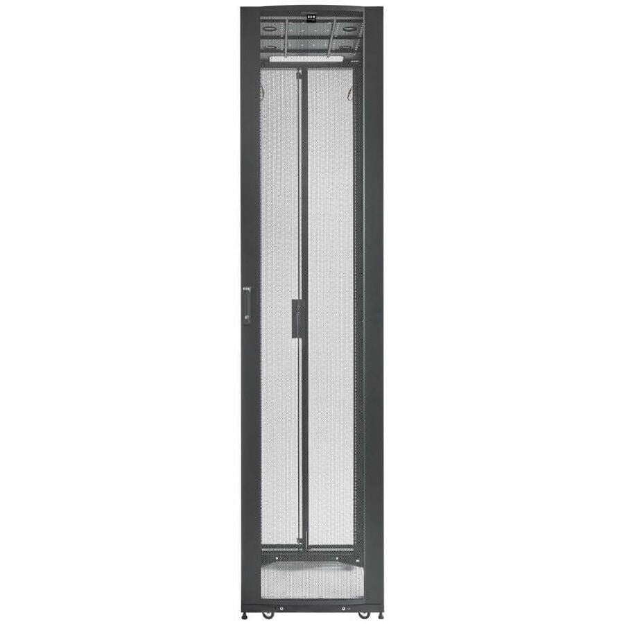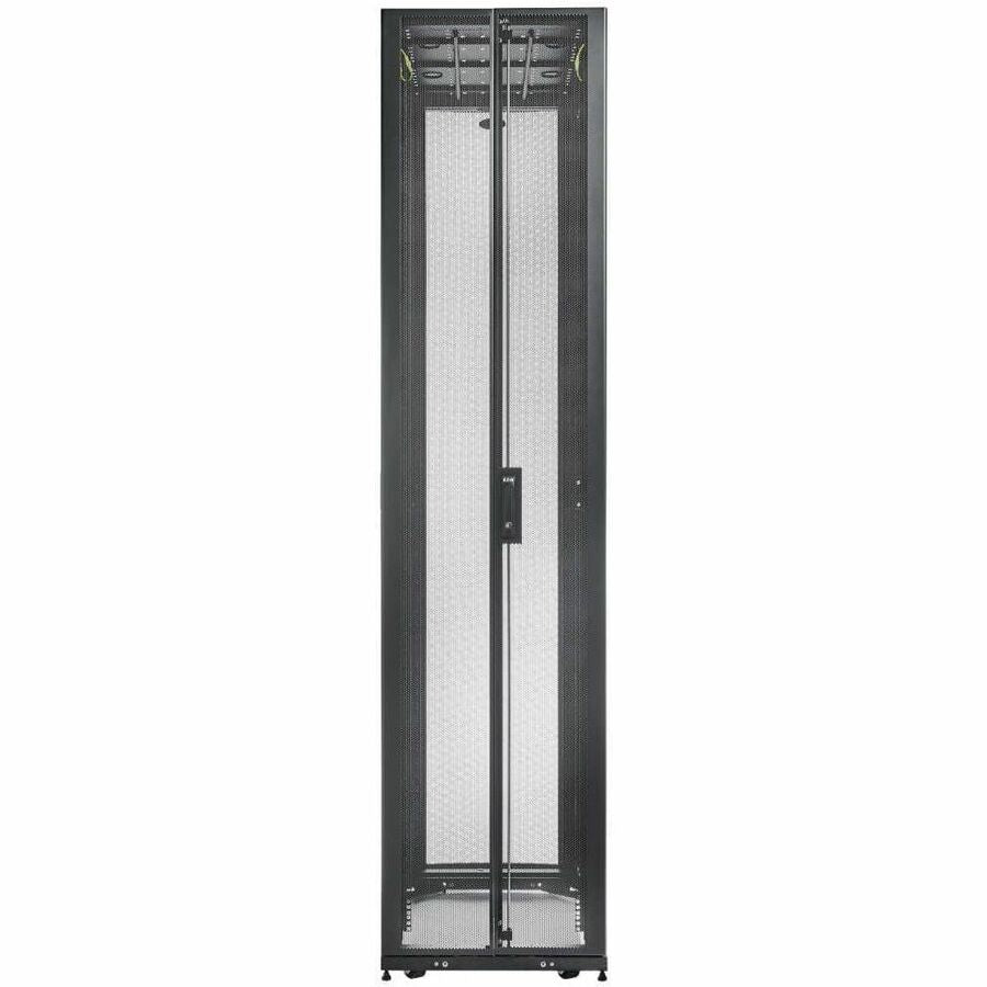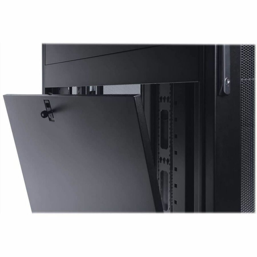 The reversible front door, split rear doors and half-size side panels lock securely to help prevent damage, tampering or theft. The doors, side panels and top panel are designed for quick release, making it easy to access connected equipment and cabling with little effort. Convenient top access ports and an open bottom allow easy cable routing through the cabinet. The vented doors allow generous airflow (more than 65% open space) from front to rear to keep your equipment cool and functioning at their peak.