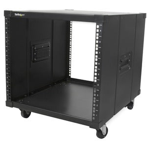 - MAXIMUM PORTABILITY: built-in handles and four swiveling casters make this the ideal mobile AV / Data equipment rack to interface with other equipment around your workspace; Ideal for utility/server closets or narrow home / office spaces