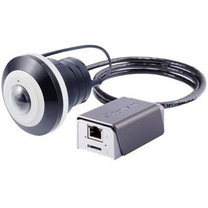 The IR Fisheye Camera is an outdoor fisheye camera that allows you to monitor all angles of a location. The camera is equipped with an IR LED ring that provides infrared illumination under low-light situations. It consists of a main body for processing and a separate camera lens for capturing images. The compact camera lens can be installed in outdoor surveillance sites with limited space.