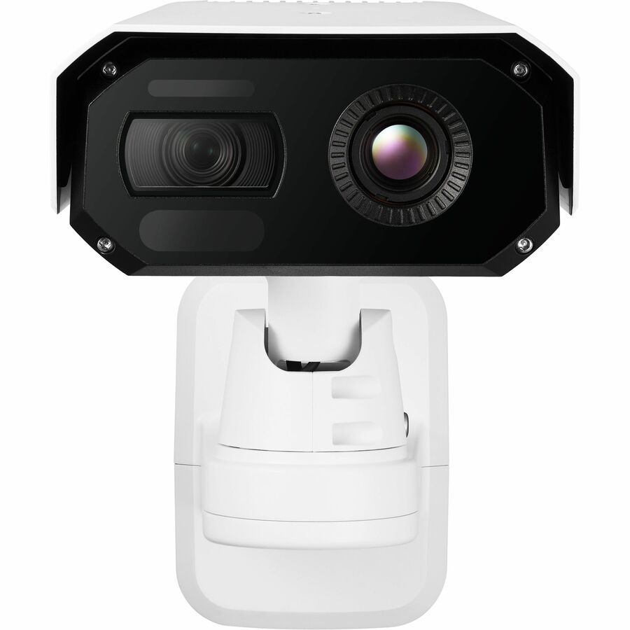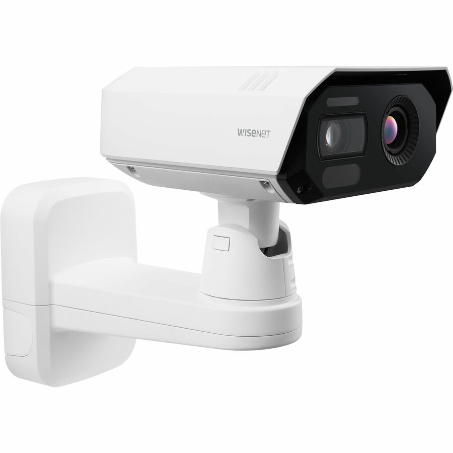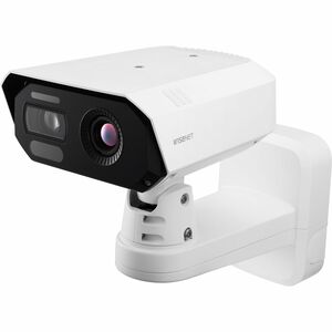 • Wisenet T network Bi-spectrum AI Thermal Camera with a Dual sensor camera featuring a VGA thermal and 4K visible video output.