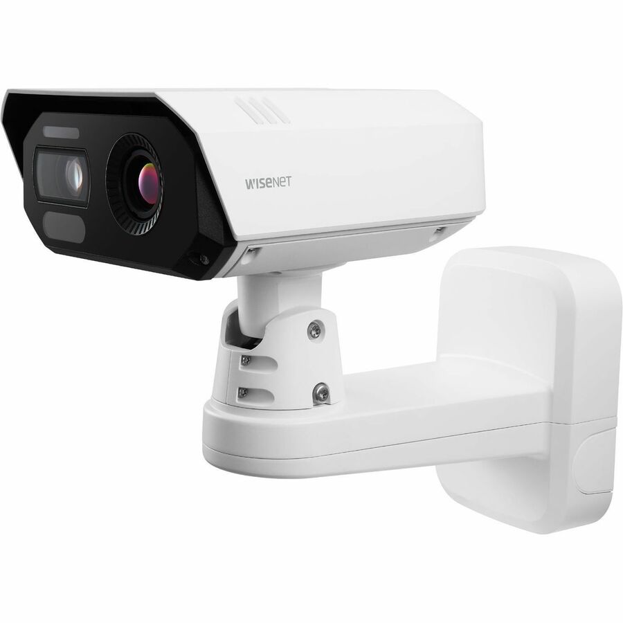 • Wisenet T network Bi-spectrum AI Thermal Camera with a Dual sensor camera featuring a VGA thermal and 4K visible video output.