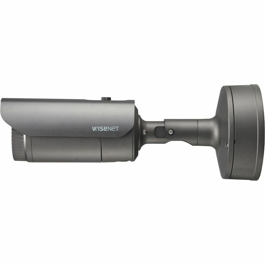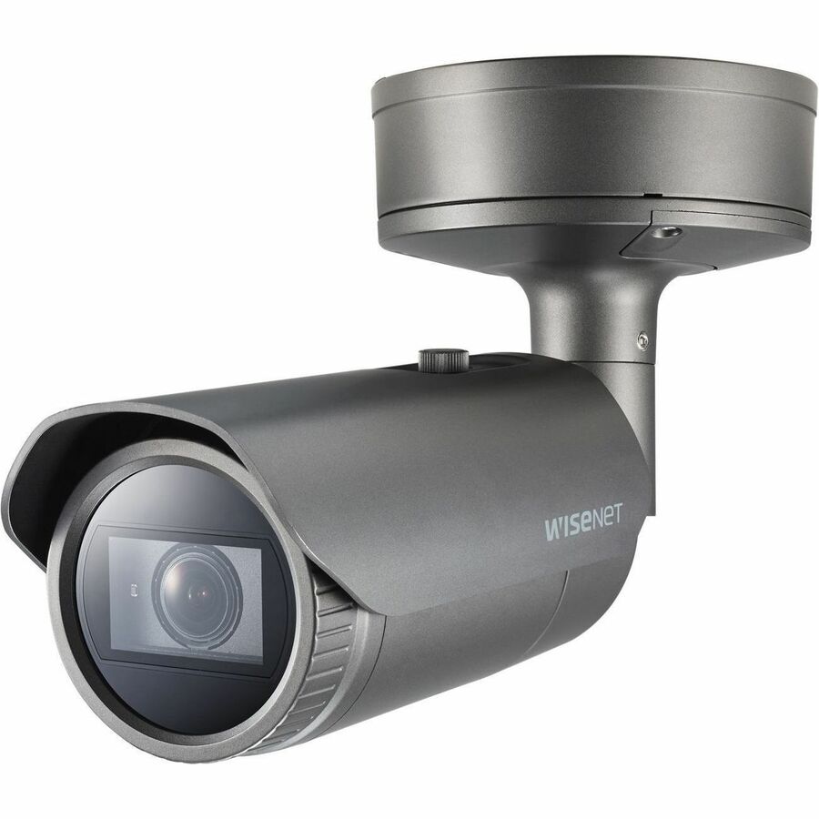 Wisenet XNO-8080R 5 Megapixel Network Camera - Color - Bullet - Dark Gray - TAA Compliant - 164.04 ft Infrared Night Vision - H.265, H.265M, H.265B, H.265H, H.264, H.264B, H.264M, H.264H, MJPEG - 2560 x 1920 - 3.70 mm- 9.40 mm Varifocal Lens - 2.5x Optical - 30 fps - CMOS - Fast Ethernet - USB - Desk Mount, Wall Mount - IK10 - IP66, IP67 - Vandal Resistant