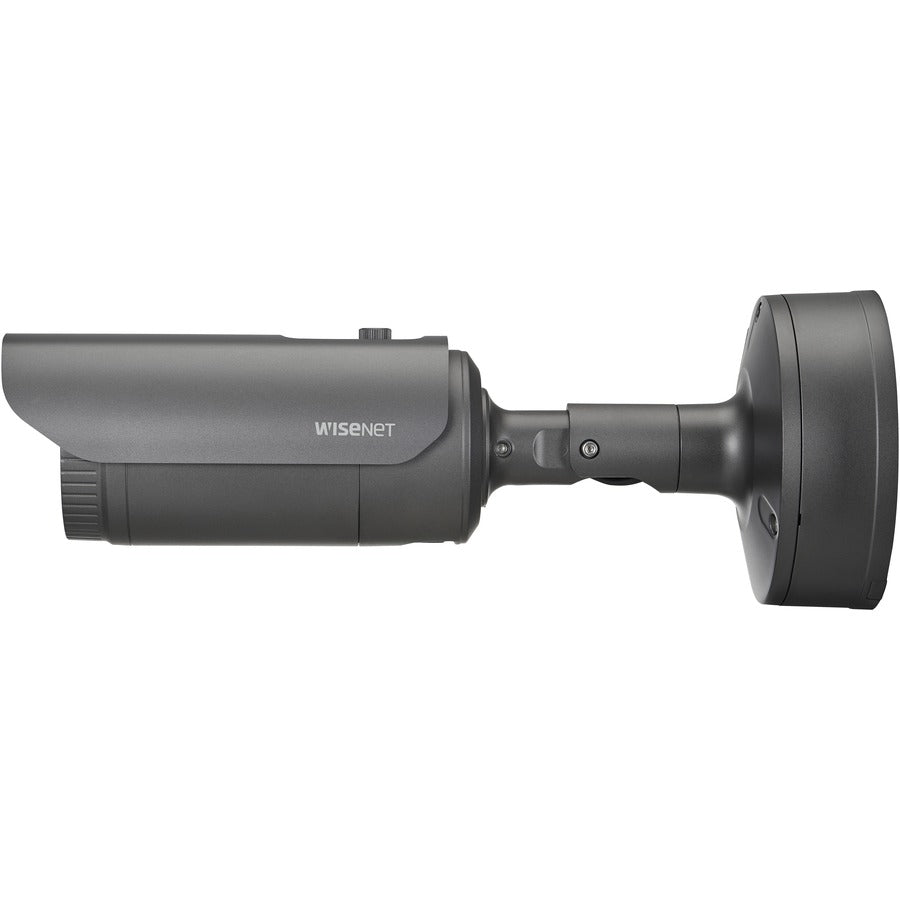 Wisenet XNO-8082R 6 Megapixel Network Camera - Color - Bullet - Dark Gray - TAA Compliant - 164.04 ft Infrared Night Vision - H.265, H.265M, H.265H, H.264, H.264M, H.264H, MJPEG - 3328 x 1872 - 2.80 mm- 8.40 mm Varifocal Lens - 3x Optical - 30 fps - CMOS - Gigabit Ethernet - USB - Desk Mount, Wall Mount - IK10 - IP66, IP67