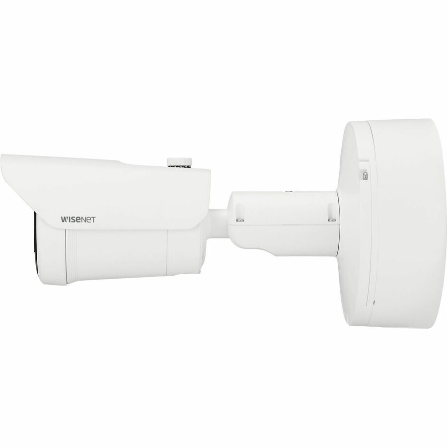 Wisenet XNO-9083R 4K Network Camera - Color - Bullet - White - TAA Compliant - 164.04 ft Infrared Night Vision - H.265, H.264, MJPEG, H.265M, H.265H, H.264M, H.264H - 3840 x 2160 - 4.40 mm- 9.30 mm Varifocal Lens - 2.1x Optical - 30 fps - CMOS - Gigabit Ethernet - USB - Desk Mount, Wall Mount, Rack Mount - IK10 - IP66, IP67