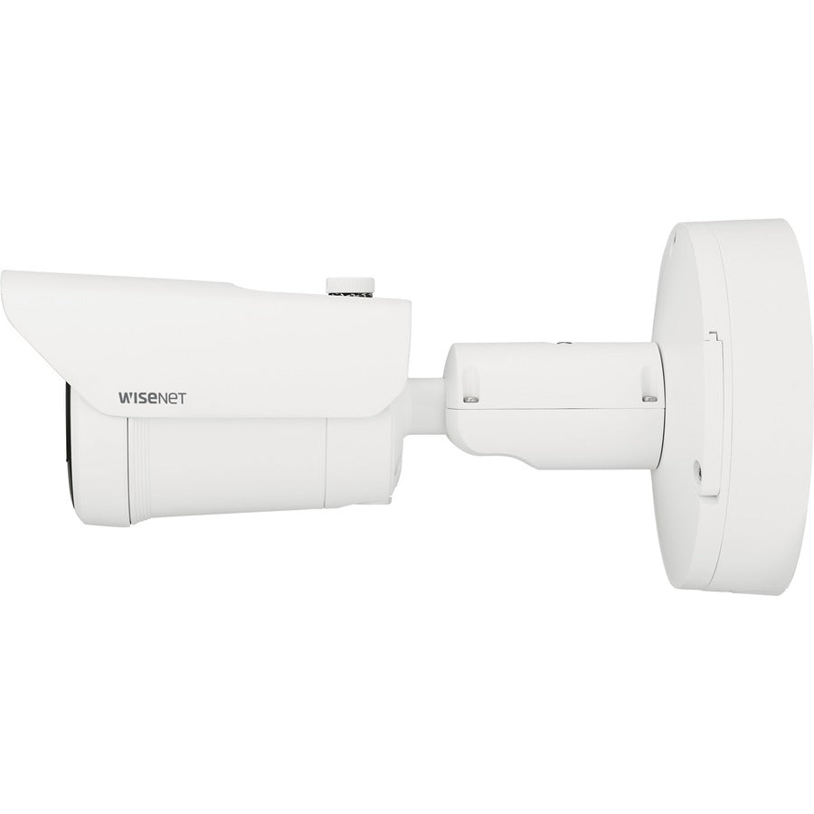 Wisenet XNO-C8083R 6 Megapixel Network Camera - Color - Bullet - White - 131.23 ft Infrared Night Vision - H.265, H.264, Motion JPEG, H.265M, H.265H, H.264M, H.264H - 3328 x 1872 - 4.40 mm- 9.30 mm Varifocal Lens - 2.1x Optical - 30 fps - CMOS - IK10 - IP66, IP67