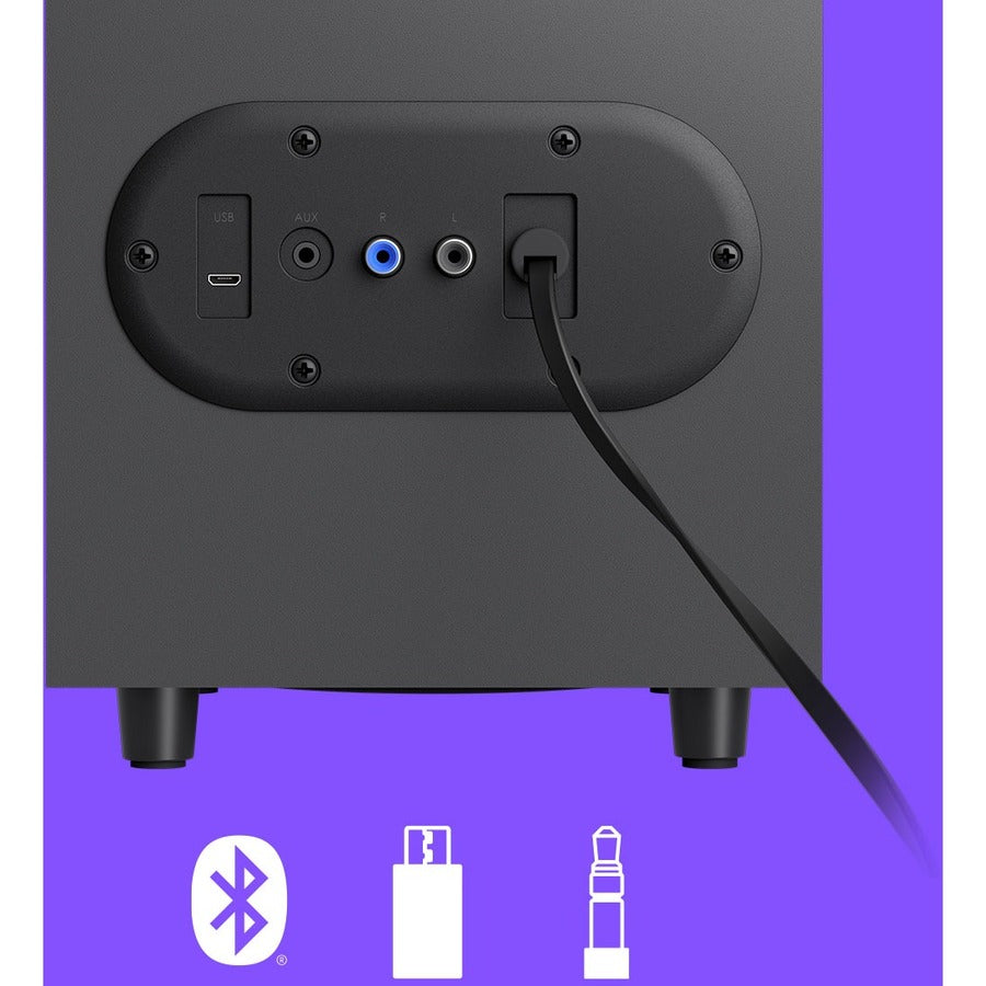 • STRONG BASS WITH CLARITY - 20-watt bass with digital signal processing produces deep yet clear bass and superior sound performance. The ported, down-firing subwoofer adds "boom" to music, movies, and gaming.
