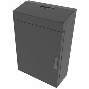 With a low-profile, patented design, this pre-configured VWM Series Wall Cabinet is ideal for vertically mounting deeper equipment in a "knobs-up" orientation within 6 spaces and 30in usable depth. It includes everything needed for a simple solution, but also can support additional customization in Lever Lock small device mounting within the cabinet and/or on the door, thermal management, cable management and power distribution for a complete system that ensures uptime and reliability on the wall. Now Forward Compatible with native mounting for Forward Cable Management in the backpan! 6 spaces and 30in of usable depth for vertical "knobs up" equipment mounting. rack rail features both 10-32 thread and cage nut. Flexible position spaces to mount the rack rail where it's needed. Split door with hinged solid top that enables end-user access to controls but restricted visibility. Both door and hinged top are lockable and keyed separately for security. Laser knockouts on the top, bottom and sides for cable entry and thermal management. Integral electrical box simplifies power distribution. Finished in a black textured powder coat.