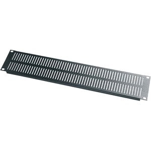 EVT2 2U Vent Panel is Value in a flanged design utilizing 16-gauge steel construction. Black powder coat anodized finish.