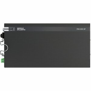The Middle Atlantic PDX-215C-SP is a compact NEXSYS PDU designed for 'behind-the-display' applications, particularly digital signage. It features (2) NEMA 5-15R outlets and operates at 15A. The PDU offers flexible mounting options with both clamp and L-brackets, which can be easily attached to a Lever Lock plate for tool-free installation inside a rack, kiosk, or in-wall box. It includes Series stage MOV surge protection with 3 stages and visual indicators of surge status on the front and side. The selectable on/off voltage protection from the dry contact port helps safeguard sensitive equipment from over/under voltage scenarios by automatically turning off the outlets during such events and restoring them once the power is within the acceptable range. The PDU also supports cleaner cable management with a standard 2ft power cord and allows for the use of both outlets without obstruction, thanks to the orientation designed for easier plugging of DC transformers (wall warts).