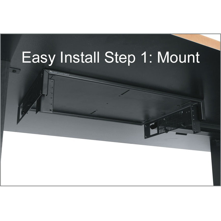 The UTB Series Universal TechBox™ is a low-profile, unique solution for discreetly mounting equipment within meeting spaces. Providing secure rackmount capability right where you need it, the UTB Series is ideal for storing all-in-one presentation and control solutions underneath a table surface in small to mid-sized huddle spaces, conference rooms and other collaboration environments. The simple, easy-to-install design offers the flexibility to expand from 1 to 2 rackspaces while also providing small device mounting.