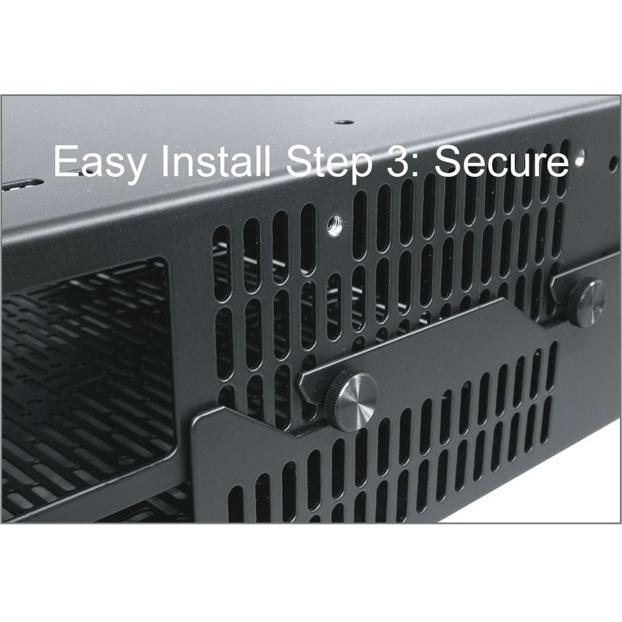 - Low profile design provides a clean and unobtrusive look with the versatility to mount horizontally or vertically and is easily installed in three steps: mount the top to the chosen surface, integrate the equipment and secure the bottom piece to the top without the need for tools
