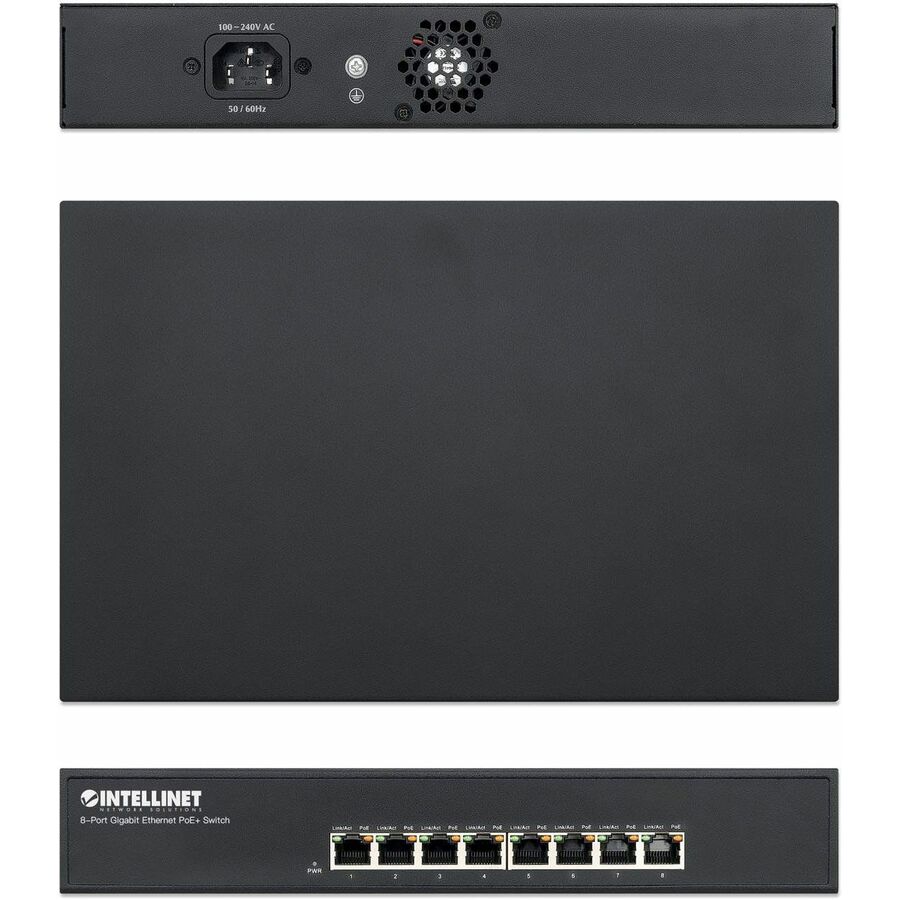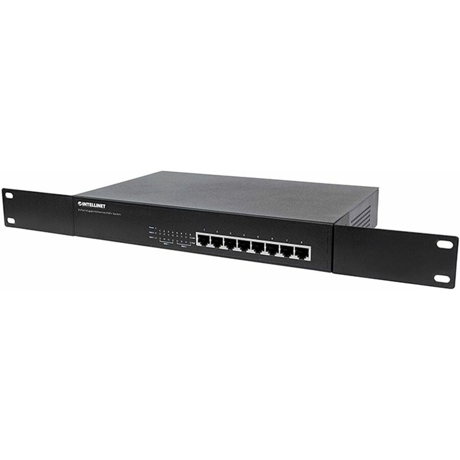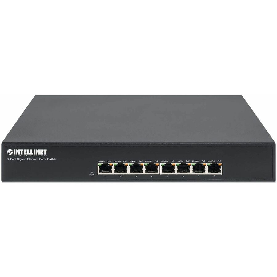 The Intellinet Network Solutions 8-Port Gigabit Ethernet PoE+ Switch is designed to pass both data and electrical power to a number of PoE-compatible devices via standard Cat5e or Cat6 network cables. Equipped with eight Gigabit Ethernet ports, this switch can power wireless LAN access points and bridges, VoIP phones, IP video cameras and more while delivering network speeds of up to 1000 Mbps.