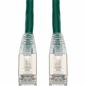 This is a 6ft Green CAT 6A Shielded PVC Ethernet Cable Snagless Easy Clear Boot TAA RJ-45 M/M. CAT6A cables provide blazing-fast internet speeds at up to 500 MHz, with a maximum speed of 10 Gbps (Gigabits per second) over the full range of 100 meters (328 feet). They are perfect for demanding home or office networks. STP cables have pairs of twisted copper wires, similar to UTP, but each pair is enclosed in a conductive shield, usually made of foil or braided wire. This is a shielding provides a barrier against external EMI and reduces crosstalk. The entire bundle of pairs is also wrapped in an additional shield, enhancing protection. PVC-CM is ideal for everyday home use, these cables offer reliable performance at an affordable price, perfect for connecting devices within a single floor. Our cables are PoE capable and TIA compliant, ensuring performance for all networking needs.